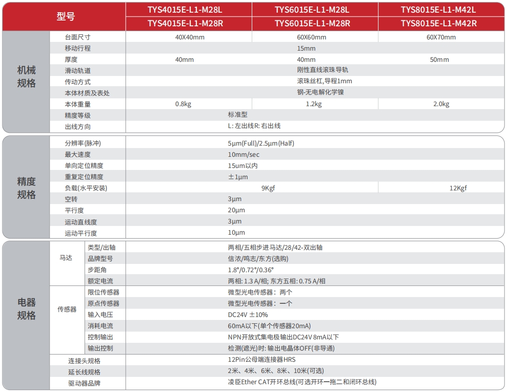 电动不锈钢滑台系列是TOKK为解决小空间、高使用频率等情况专门设计的高精密电动位移滑台。产品本体材料采用不锈钢材质,表面无电解化学镍处理,拥有极强的防锈性能;传动部件采用高精密滚珠丝杠、哥德式弧型沟槽导轨, 双弧槽共四个接触点, 构成坚固的滑轨结构,其定位精度与寿命较高, 具备高速正反向的传动特点;该系列产品非常适合集成在对空间、尺寸、重量要求较高的自动化设备、精密仪器设备中,也比较适合使用在运动范围较小、往复频率高的工业生产线中。