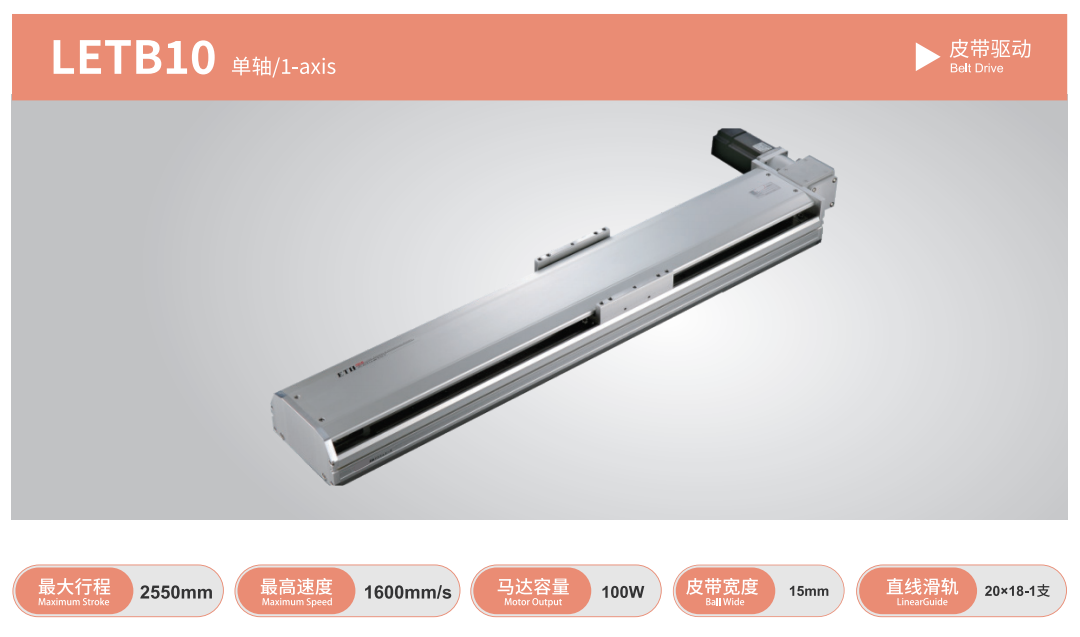 The application scope of the belt series linear module is for production line workpiece changing devices, bundling film cutting devices, CNC machining machine room handling devices, and other purposes. The industries applied include TFT-LCD liquid crystal panel equipment, solar energy equipment, food equipment, packaging equipment, and CNC processing equipment.
