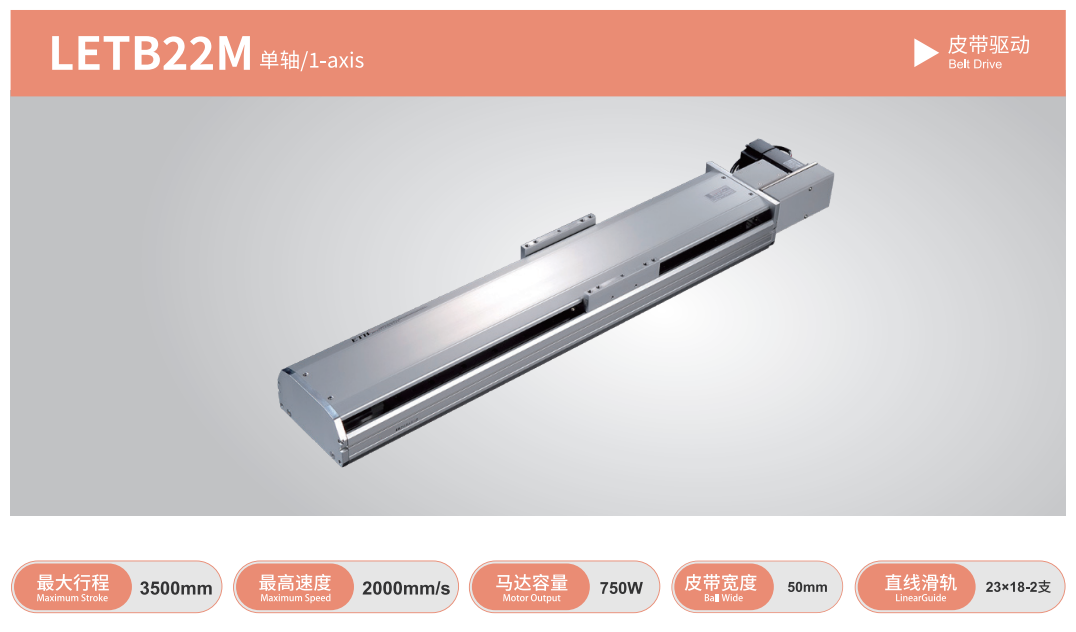 The application scope of the belt series linear module is for production line workpiece changing devices, bundling film cutting devices, CNC machining machine room handling devices, and other purposes. The industries applied include TFT-LCD liquid crystal panel equipment, solar energy equipment, food equipment, packaging equipment, and CNC processing equipment.