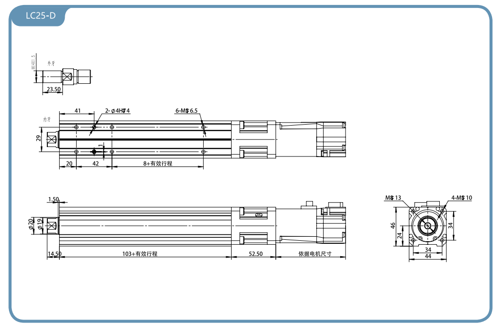 电动缸是将伺服电机与丝杆一体化设计的模块化产品,将伺服电机的旋转运动转换成直线运动,同时将伺服电机*佳优点-精确转速控制,精确转数控制,精确扭矩控制转变成-精确速度控制,精确位置控制,精确推力控制;实现高精度直线运动系列的全新革命性产品。