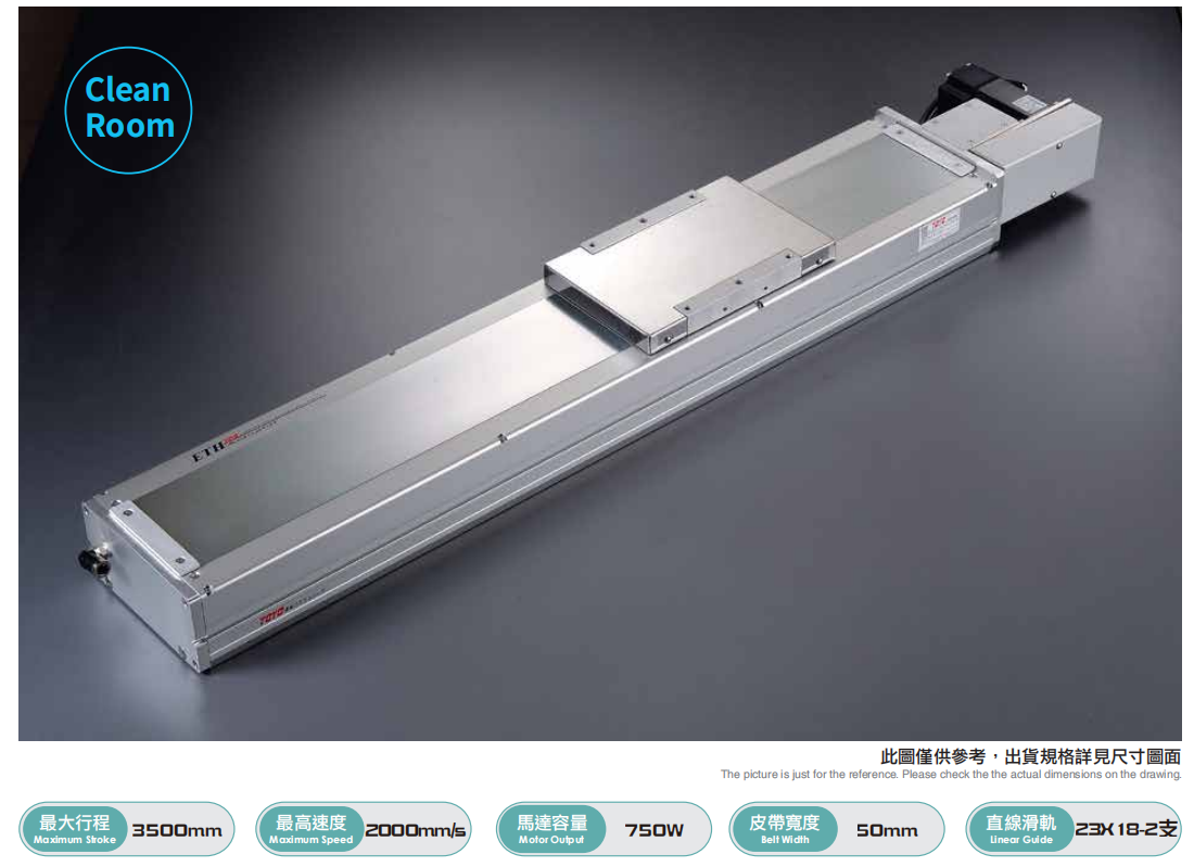 皮带系列直线模组适用范围为生产线工件换线装置、捆包胶膜切断装置、CNC加工机间搬运装置等用途。应用的产业有TFT-LCD液晶面板设备、太阳能设备、食品设备、包装设备以及CNC加工设备。