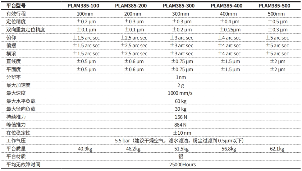 高性能直驱气浮平台,高动态性能,采用空气环绕型预载,非接触设计,为高性能扫描和检测应用量身设计,纳米级定位精度的气浮平台,直线电机驱动,可作单轴使用,或与其它轴组成多轴系统,非常适合重负载的应用等产品特点。利用空气弹性势能作为支撑导轨,实现滑轨,与滑台零摩擦,**的动态性能和定位精度,气浮平台正负压设计,大体积负载在气浮导轨上重力不均匀分布的应用,可以更好的保证空气导轨的正常气隙等结构特点。适用于大型光学透镜检测 、半导体领域的晶圆缺陷检测、精密制造和封装等行业。