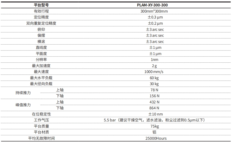 高性能直驱气浮平台,高动态性能,采用空气环绕型预载,非接触设计,为高性能扫描和检测应用量身设计,纳米级定位精度的气浮平台,直线电机驱动,可作单轴使用,或与其它轴组成多轴系统,非常适合重负载的应用等产品特点。利用空气弹性势能作为支撑导轨,实现滑轨,与滑台零摩擦,**的动态性能和定位精度,气浮平台正负压设计,大体积负载在气浮导轨上重力不均匀分布的应用,可以更好的保证空气导轨的正常气隙等结构特点。适用于大型光学透镜检测 、半导体领域的晶圆缺陷检测、精密制造和封装等行业。