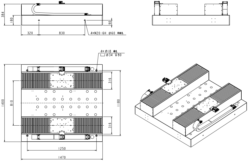 使用气浮导轨,超高直线度,速度波动可达 0.1%@40mm/s等产品特点。双驱布局可搭配双边 Z 轴使用,平台结构紧凑,有较强的驱动能力等结构特点。适用于光伏涂布行业。可以根据客户需求配置、行程、负载、特殊结构等进行评估定制。