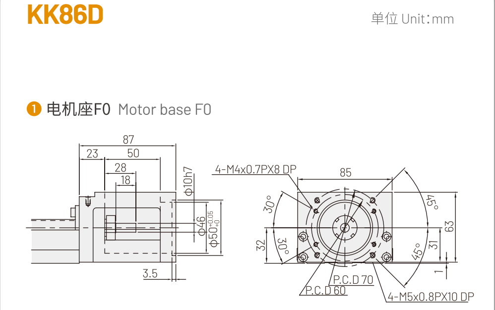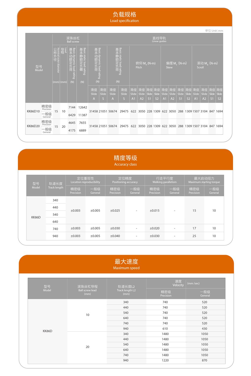 单轴机器人KK型主要是透过模组化之设计,将滚珠丝杠和直线导轨整合在一起,因此可提供具有高精度、快速安装、选用、高刚性、体积小、节省空间等特性。借由高精度之滚珠丝杠做为传动机构,配合*佳化设计之U型轨道做为导引机构,来确保精度与刚性之需求。