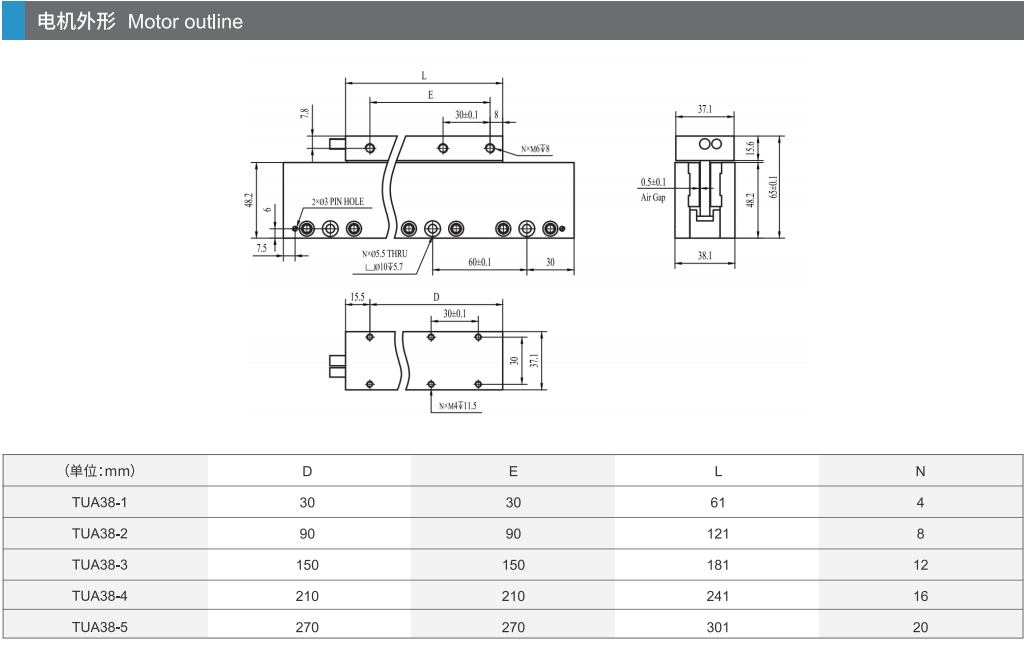 TUA38系列无铁芯直线电机
