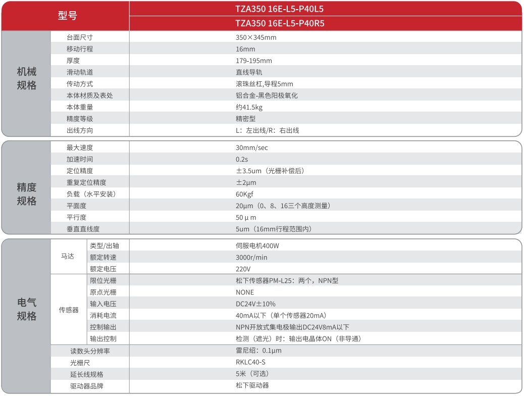 电动Z轴高精滑台模组系列是TOKK为解决高精密设备运动对位和加工检测需求,开发设计的高精密、高稳定性、高使用频率等特点的电动升降滑台。产品本体材料采用硬质铝合金,表面黑色阳极氧化处理,**防止反射光对光源的影响:传动部件采用高精密滚珠丝杠、楔块式导轨滑块,耐性好强度高、负载能力强;该系列产品非常适合集成在对空间、尺寸、重量要求较高的自动化设备、精密仪器设备中,也比较适合使用在运动范围较小、往复频率高的工业生产线中。
