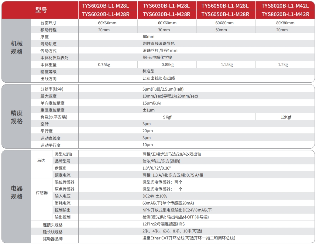 电动不锈钢滑台系列是TOKK为解决小空间、高使用频率等情况专门设计的高精密电动位移滑台。产品本体材料采用不锈钢材质,表面无电解化学镍处理,拥有极强的防锈性能;传动部件采用高精密滚珠丝杠、哥德式弧型沟槽导轨, 双弧槽共四个接触点, 构成坚固的滑轨结构,其定位精度与寿命较高, 具备高速正反向的传动特点;该系列产品非常适合集成在对空间、尺寸、重量要求较高的自动化设备、精密仪器设备中,也比较适合使用在运动范围较小、往复频率高的工业生产线中