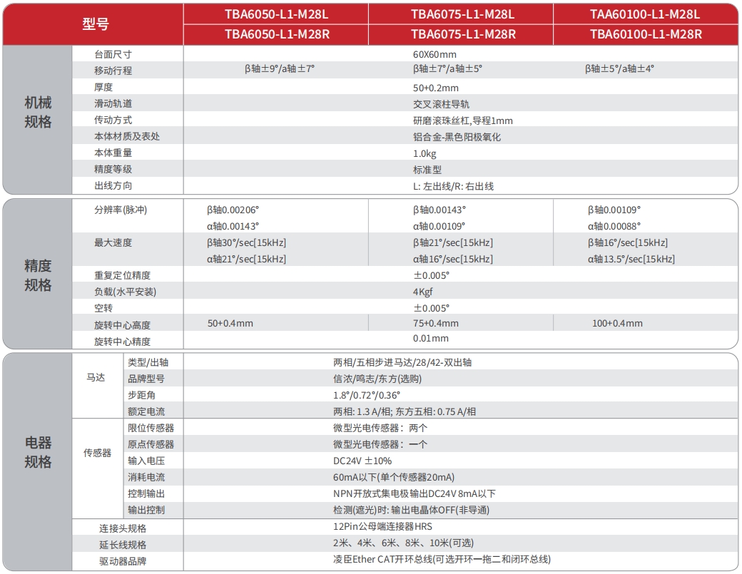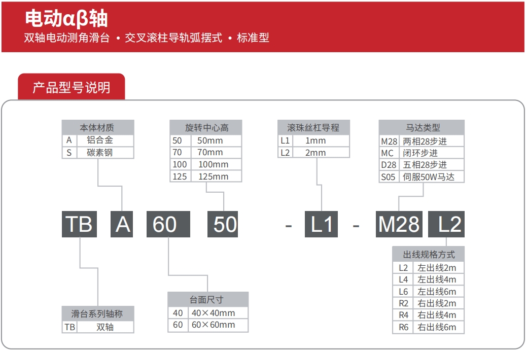 电动α轴铝合金滑台系列是TOKK为解决小空间、高使用频率等情况专门设计的电动摆动滑台。产品本体材料采用硬质铝合金,表面黑色阳极氧化处理,**防止反射光对光源的影响;传动部件采用高精密滚珠丝杠、弧形交叉滚柱导轨,耐磨性好、强度高、负载能力强;该系列产品非常适合集成在对空间、尺寸、重量要求较高的自动化设备、精密仪器设备中,也比较适合使用在运动范围较小、往复频率高的工业生产线中。