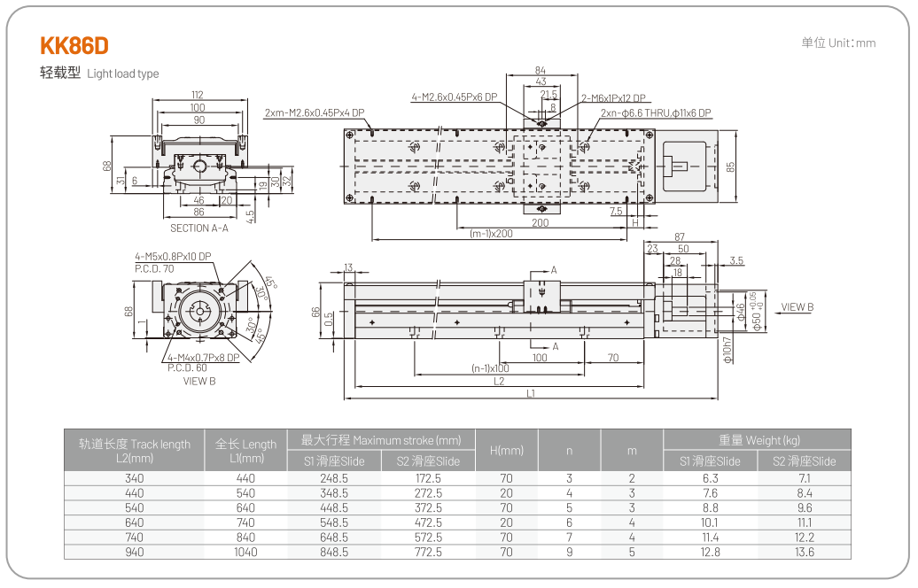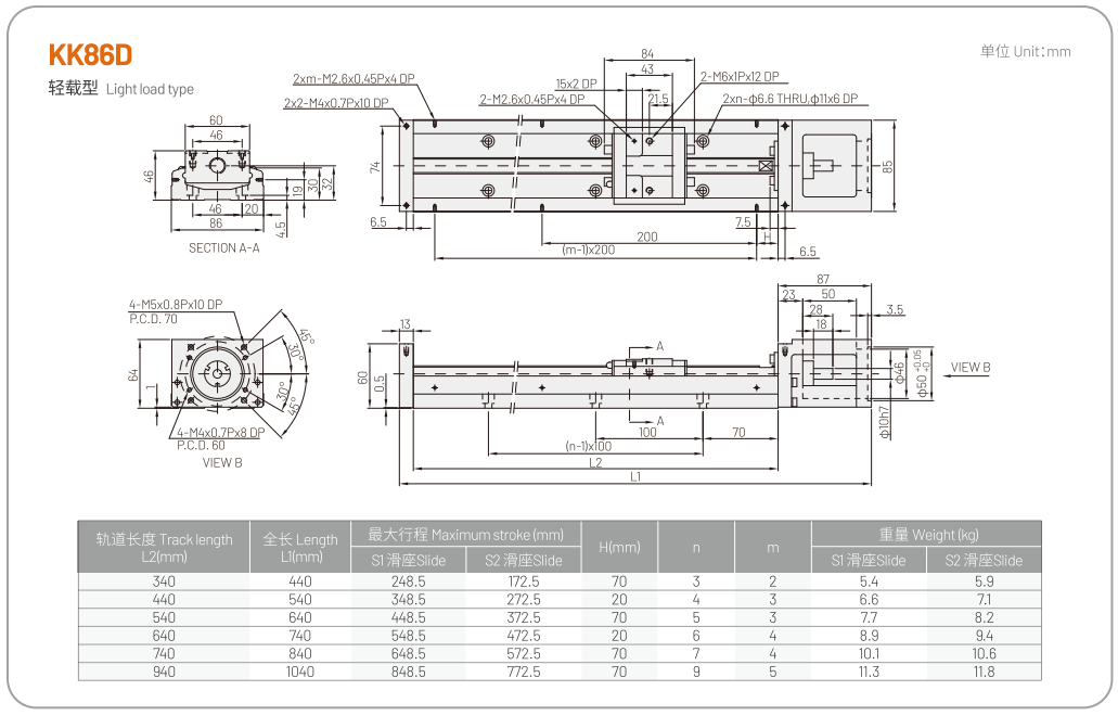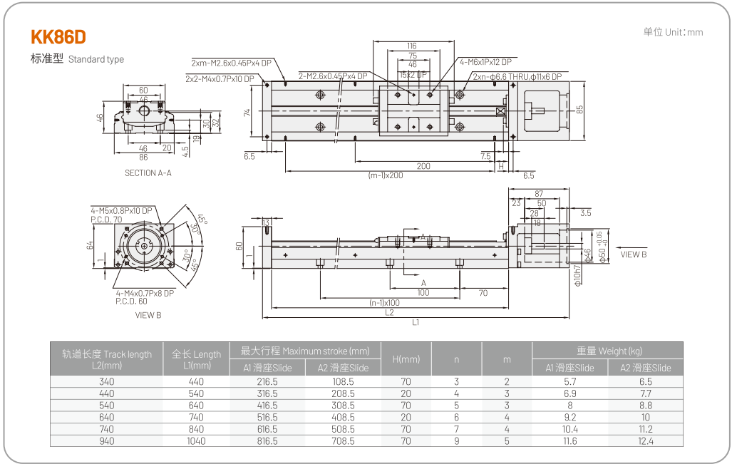The single axis robot KK mainly integrates ball screws and linear guides through modular design, thus providing features such as high precision, fast installation, selection, high rigidity, small volume, and space saving. By using high-precision ball screws as the transmission mechanism and an optimized U-shaped track as the guide mechanism, the accuracy and rigidity requirements are ensured.