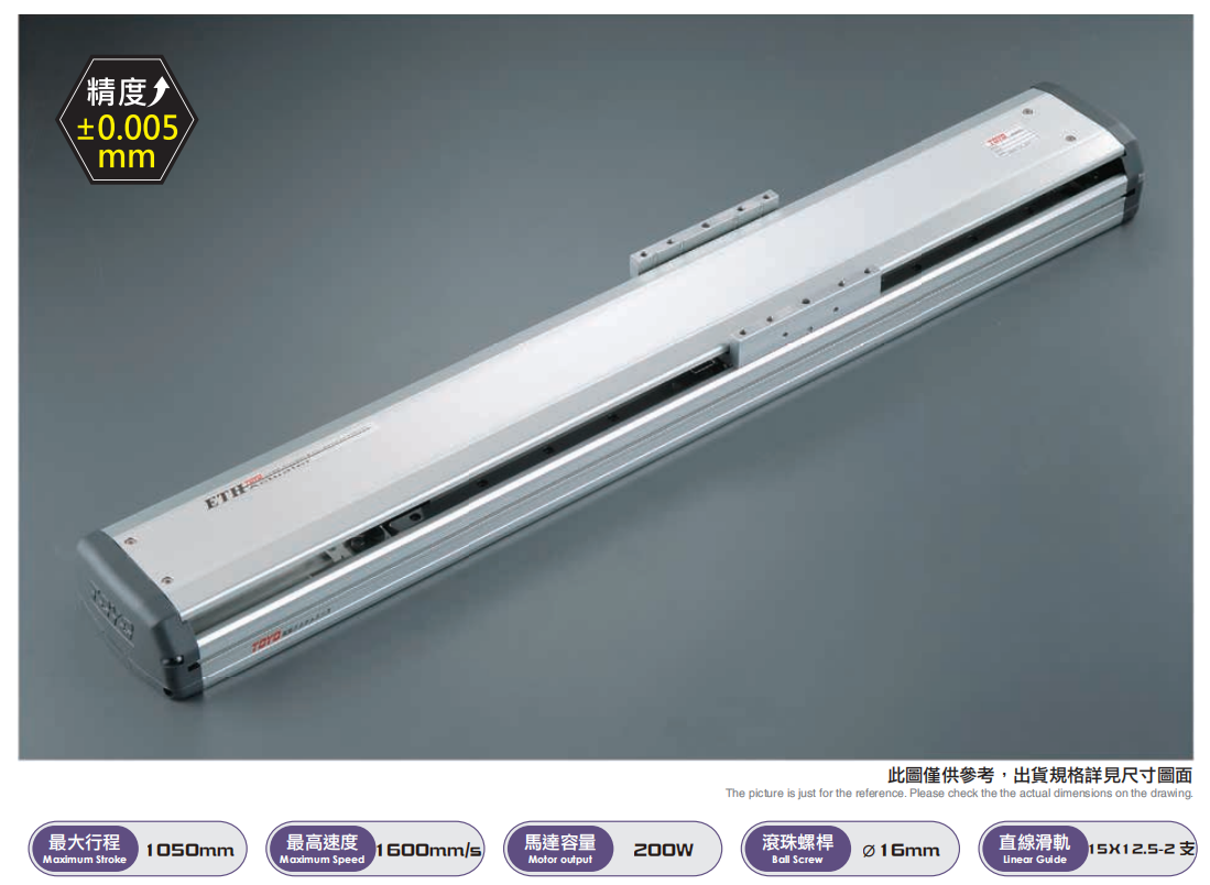 螺杆系列模组具有高精度、高稳定性的特点,螺杆驱动模组可轻易达到高精度的使用者需求,并稳定运转确保螺杆、滑轨的使用寿命及组装质量。主要运用于工作定位、夹取、搬运、插件等,电子部品组装、电路板与晶圆盒定位插入位置等自动化领域,是科技设备大厂指定并多元化产业(传产、汽机车大厂等)广泛使用。