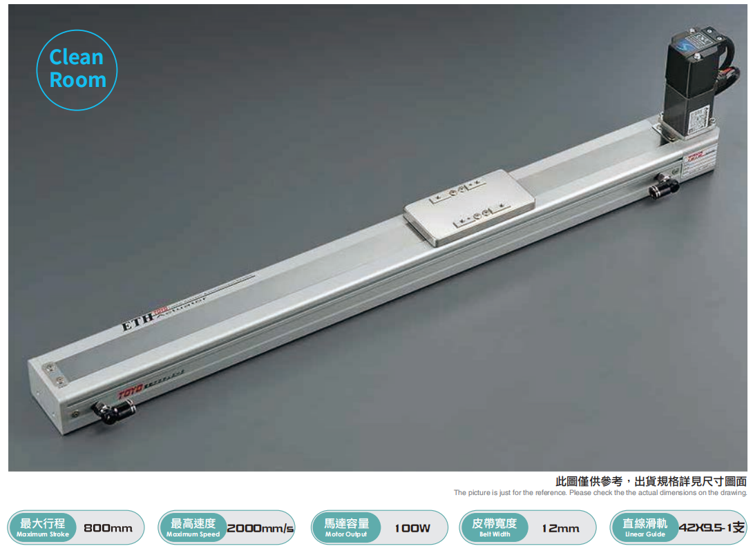皮带系列直线模组适用范围为生产线工件换线装置、捆包胶膜切断装置、CNC加工机间搬运装置等用途。应用的产业有TFT-LCD液晶面板设备、太阳能设备、食品设备、包装设备以及CNC加工设备。