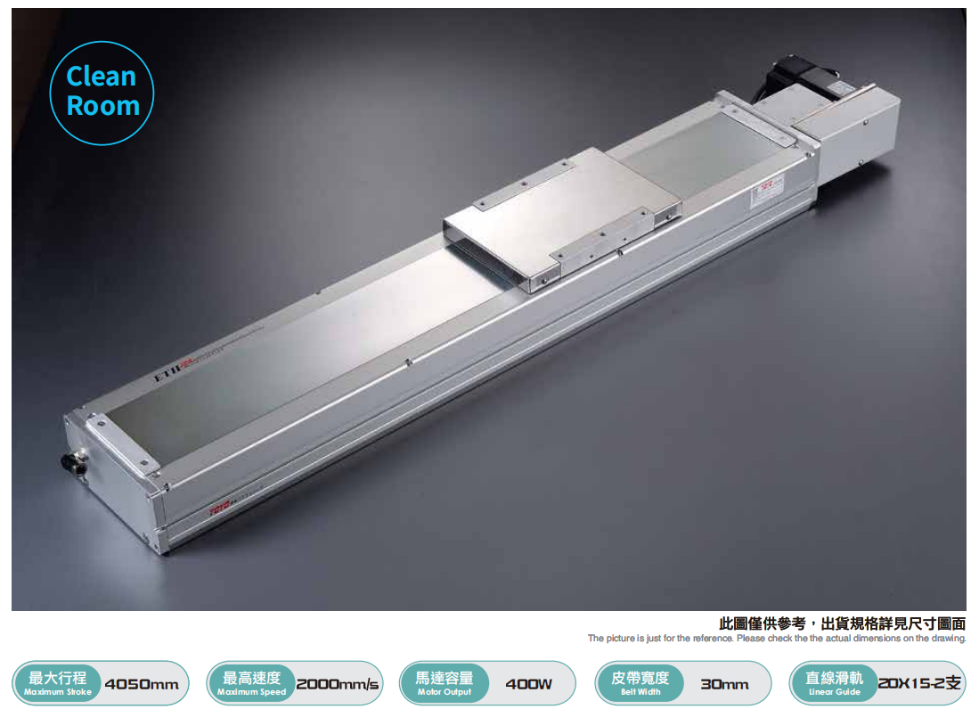 皮带系列直线模组适用范围为生产线工件换线装置、捆包胶膜切断装置、CNC加工机间搬运装置等用途。应用的产业有TFT-LCD液晶面板设备、太阳能设备、食品设备、包装设备以及CNC加工设备。