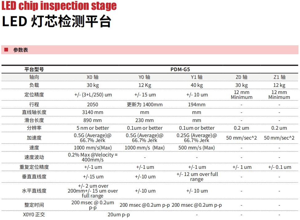 精密直线导轨,无铁芯电机,超高的速度稳定性,兼顾大行程、高精度、重负载,超大检测幅面,可定制小世代*大世代多种机型等产品特点,龙门结构,稳定性高,低阿贝误差,平台结构紧凑,有较强的驱动能力等结构特点,适用于大型面板灯芯检测行业。