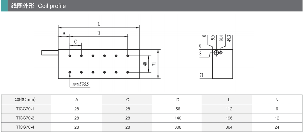 TICG70系列有铁芯直线电机