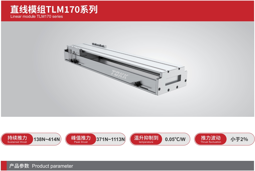 TOKK直线电机模组以其精度高、速度快、运行平稳、结构简单、集成度高、标准系列化、经济高效等特点,已广泛应用到诸多行业。同时得到行业的高度认可与青睐。从简单的搬运、传送到精密测量、精密加工,TOKK直线电机技术可应用到多种多样的加工工艺和工况场景。同时,可定制化灵活组合、高稳定性、高性价比等特性,可满足客户多元化的应用需求。